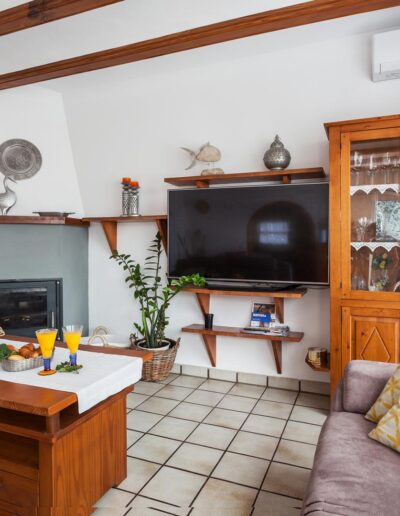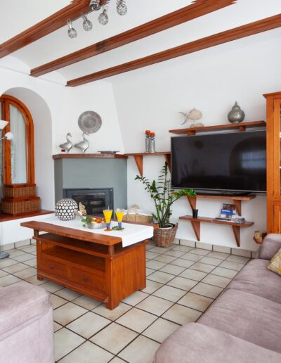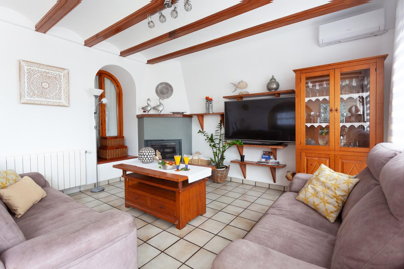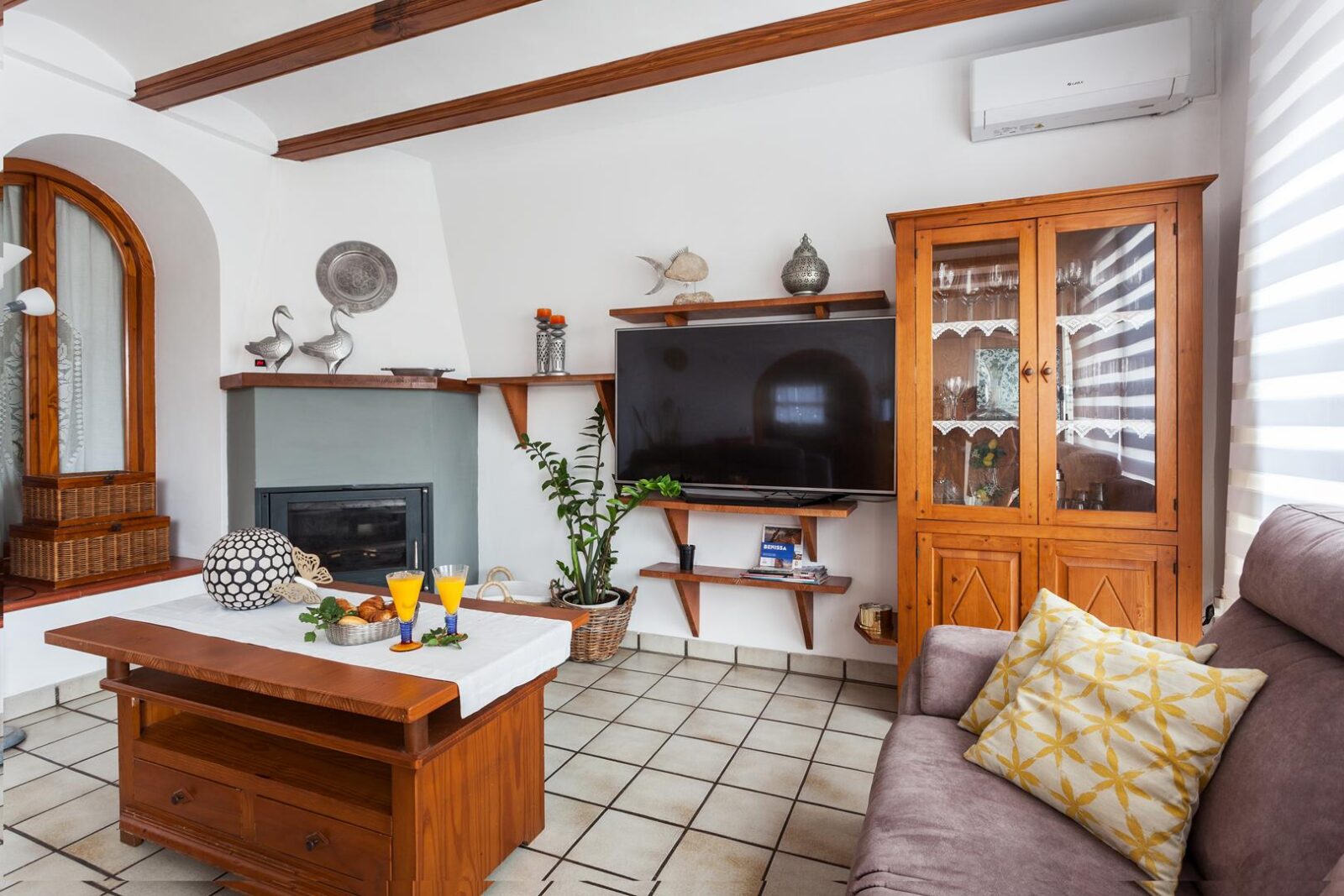 - Salón con chimenea y sofá para hasta 8 personas con aire acondicionado