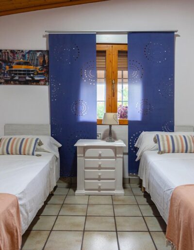- 1 habitación doble con cama de 1,50 m y ventilador