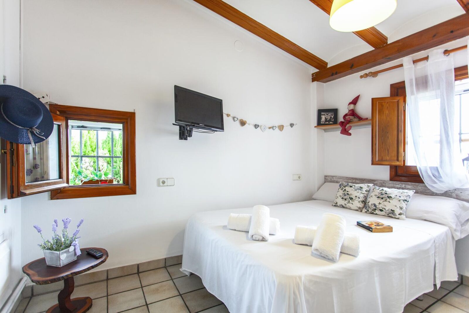 - Habitación principal con cama de 1,50 x 2,00 m, Smart TV y ventilador
