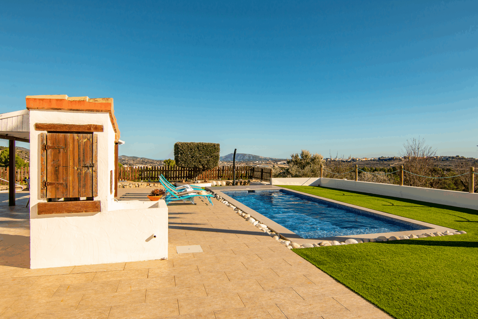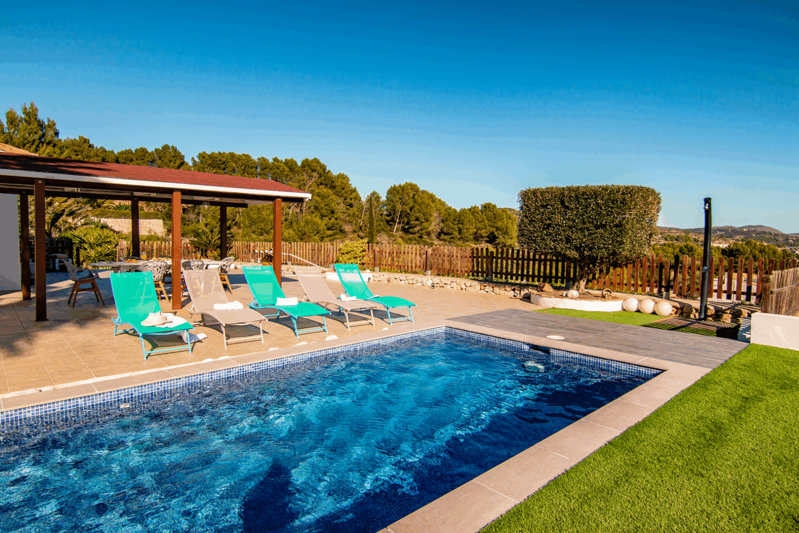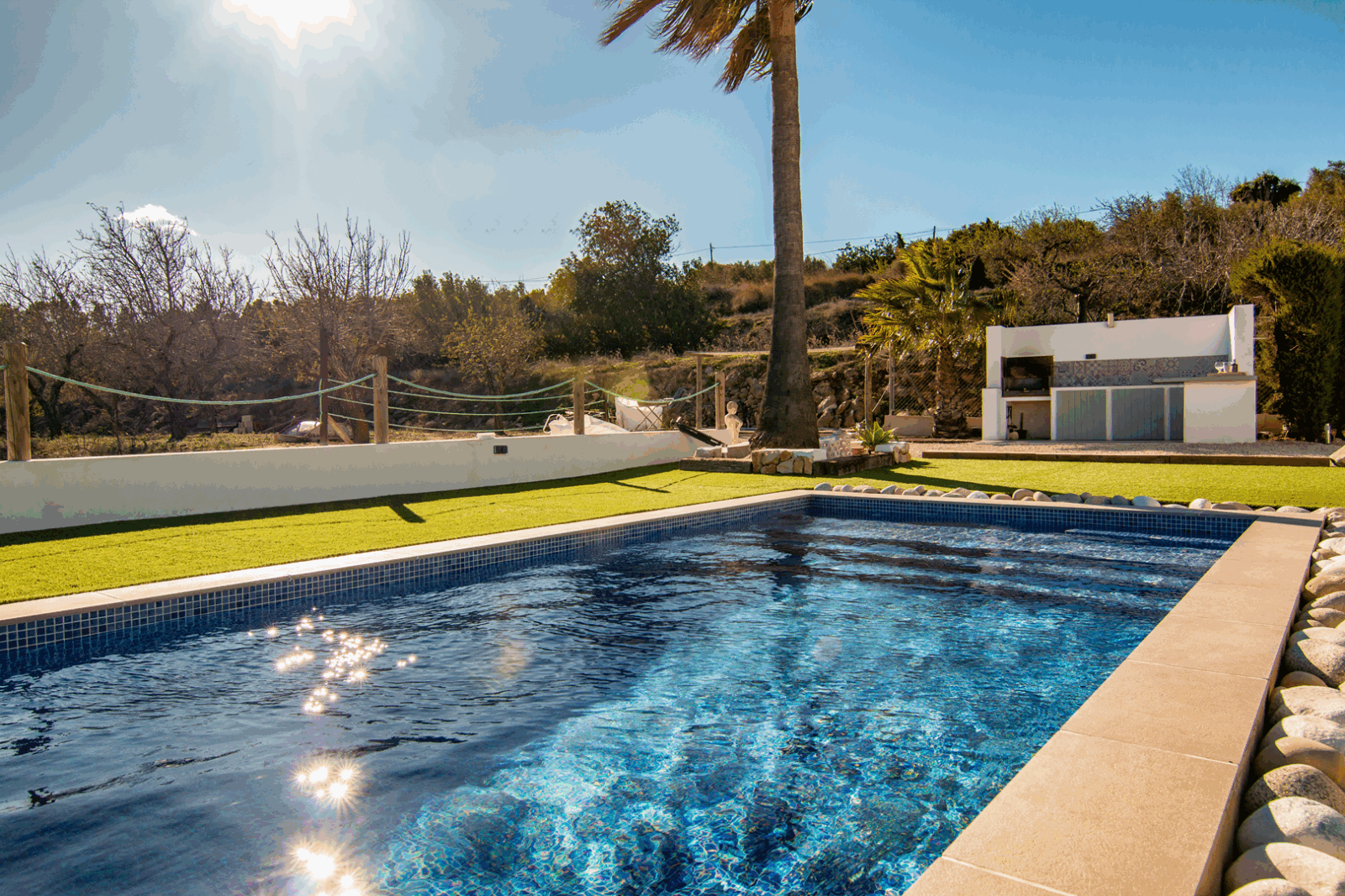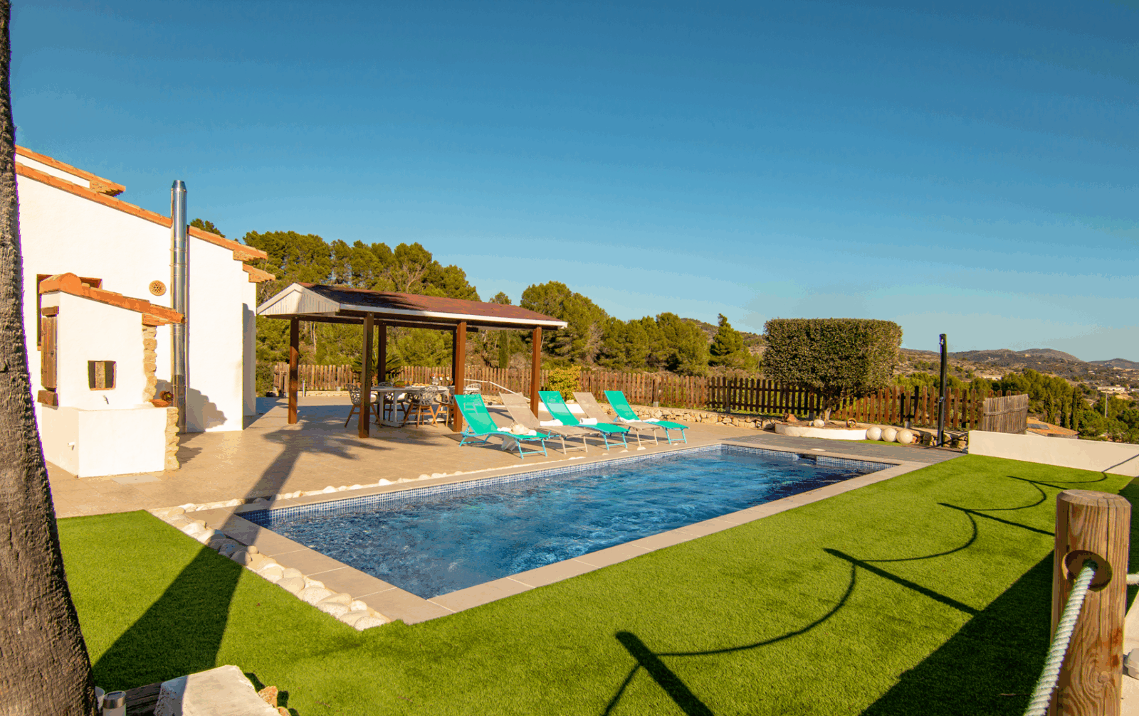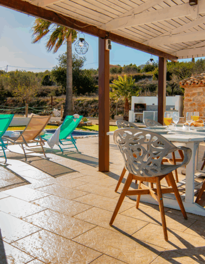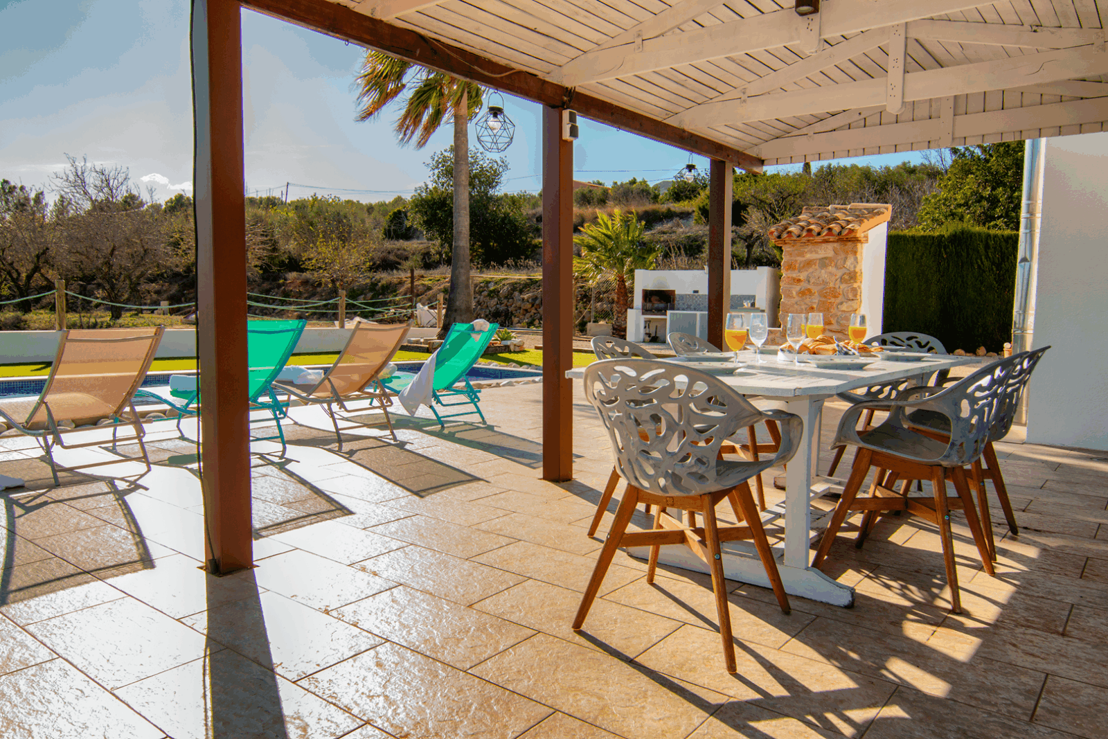 Finca Romer es una acogedora casa de campo ubicada en plena naturaleza, ideal para familias o grupos de amigos que buscan descanso y confort a pocos minutos de las playas y calas de Benissa, Moraira y Calpe.