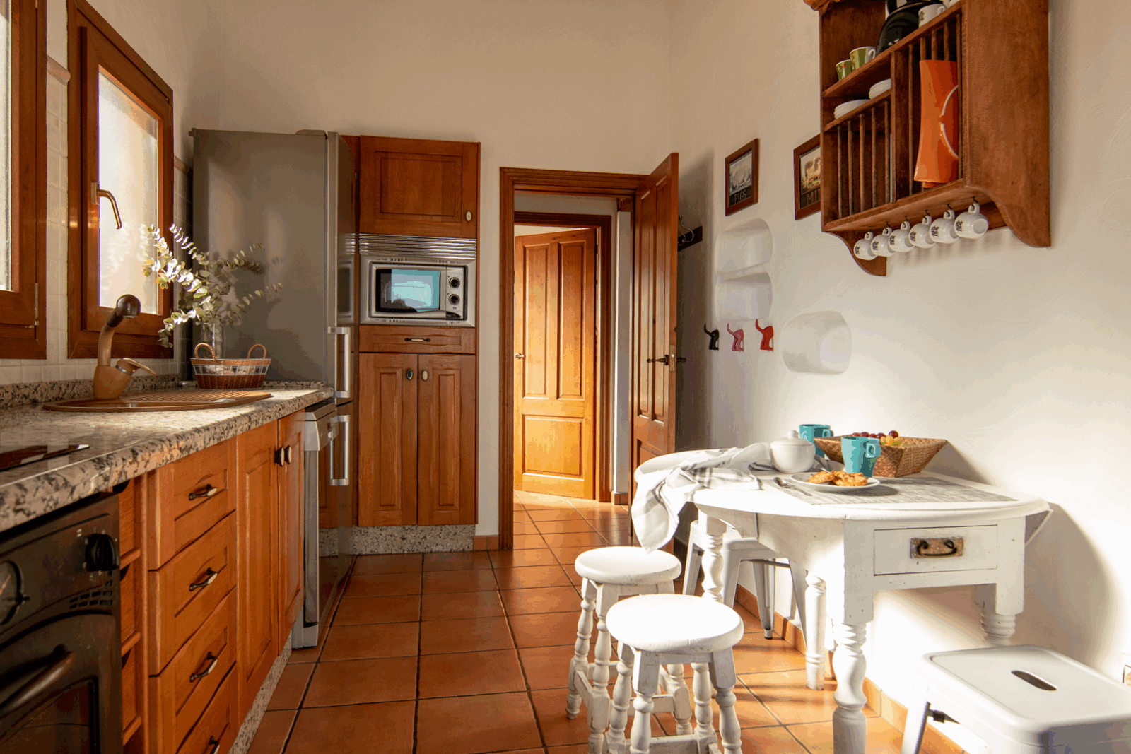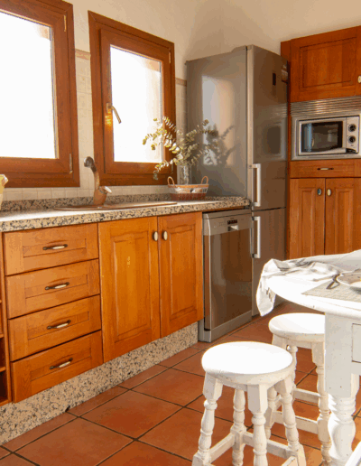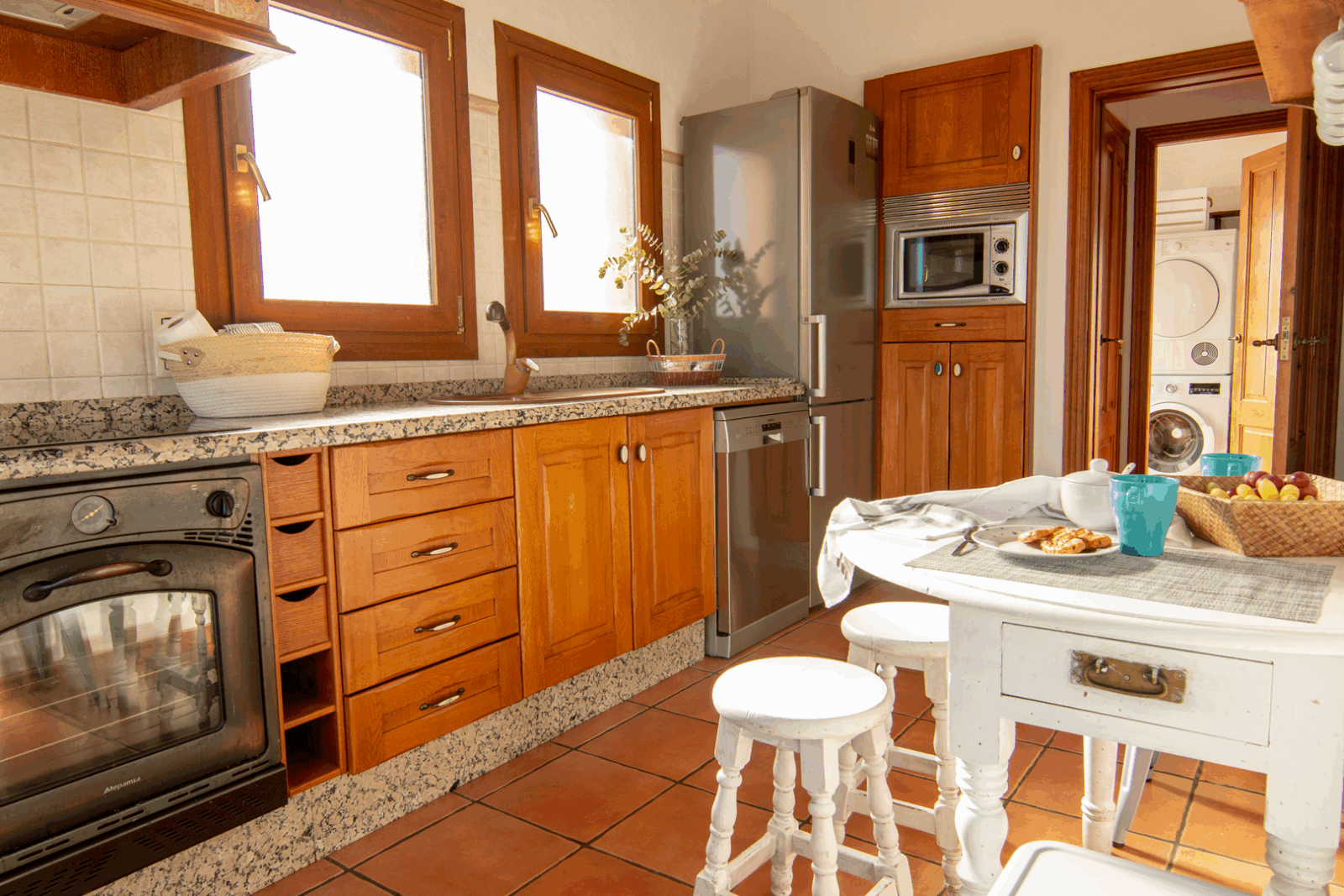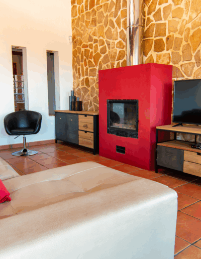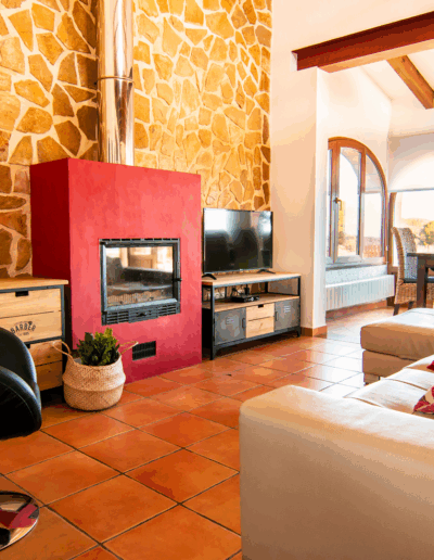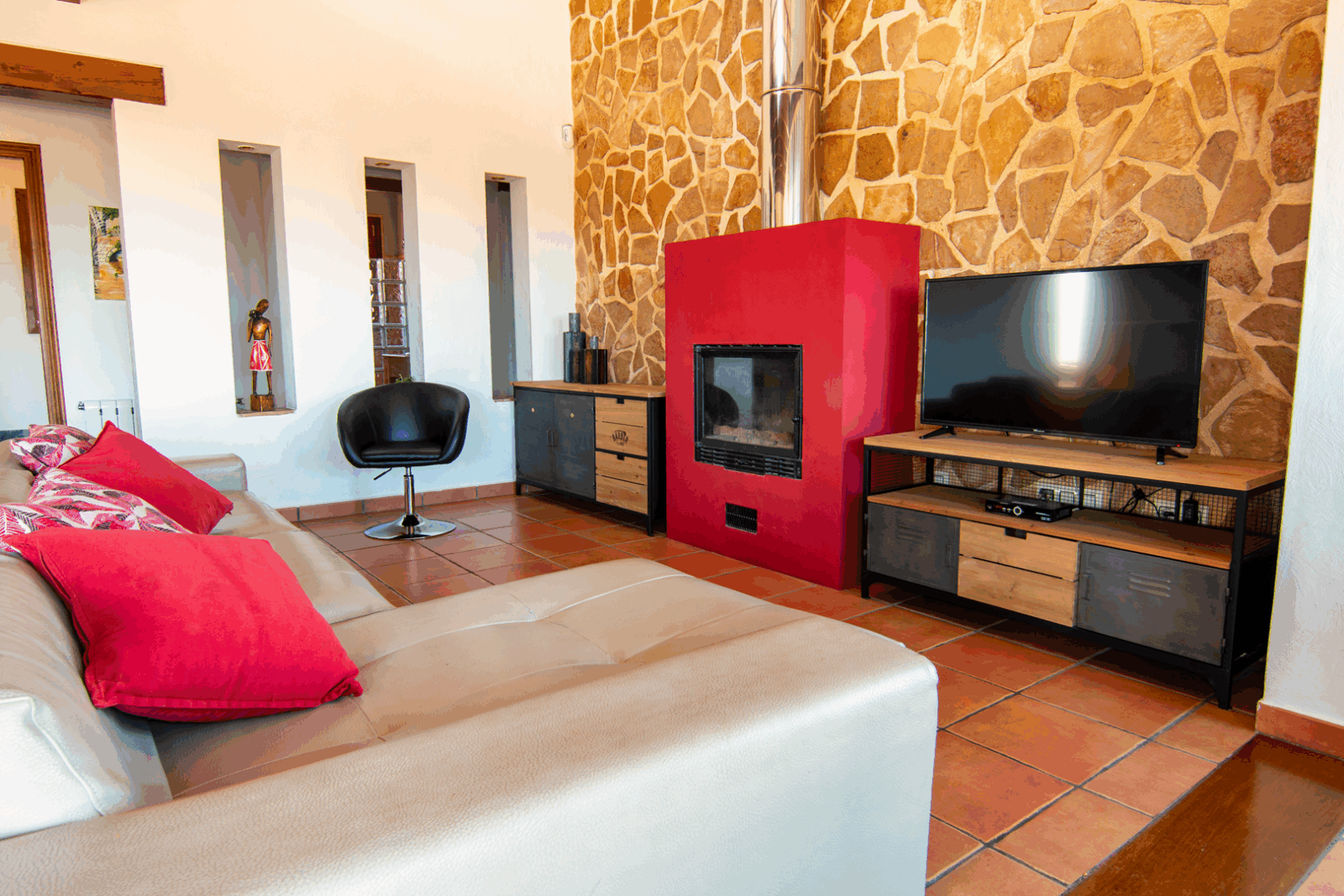 El alojamiento dispone de 2 baños completos, un gran salón comedor con cocina integrada, aire acondicionado potente, chimenea y calefacción, lo que la convierte en una opción ideal también para estancias de invierno o largas temporadas.