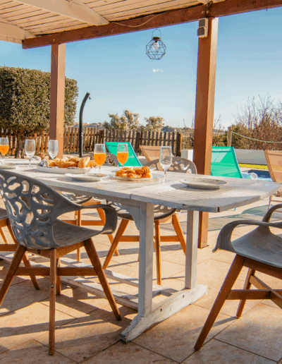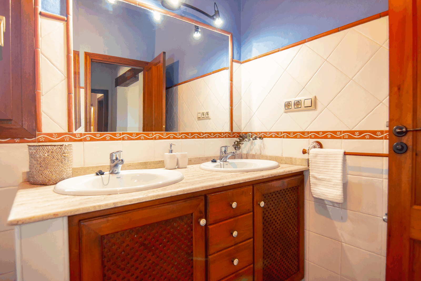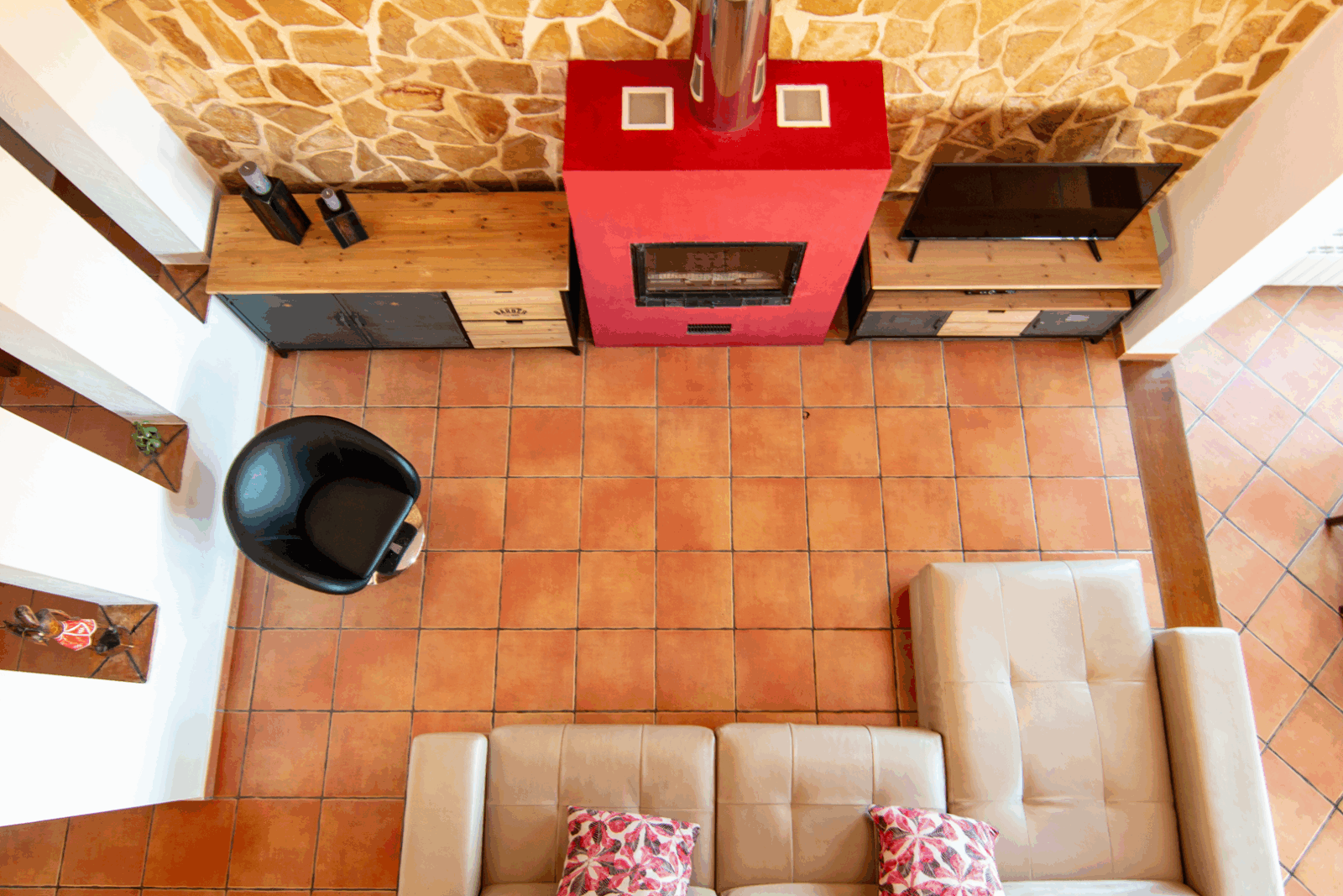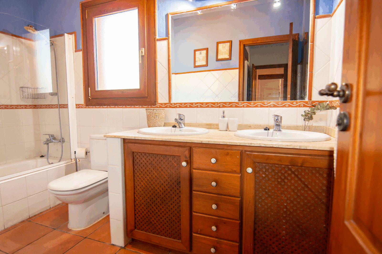 El alojamiento dispone de 2 baños completos, un gran salón comedor con cocina integrada, aire acondicionado potente, chimenea y calefacción, lo que la convierte en una opción ideal también para estancias de invierno o largas temporadas.